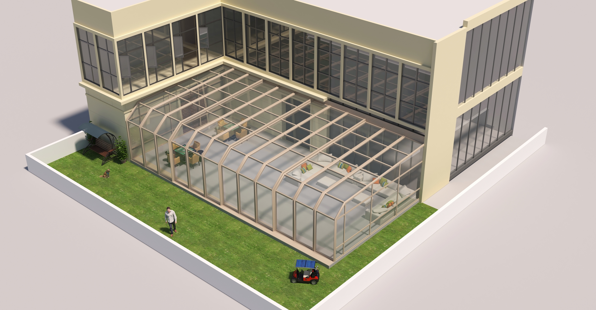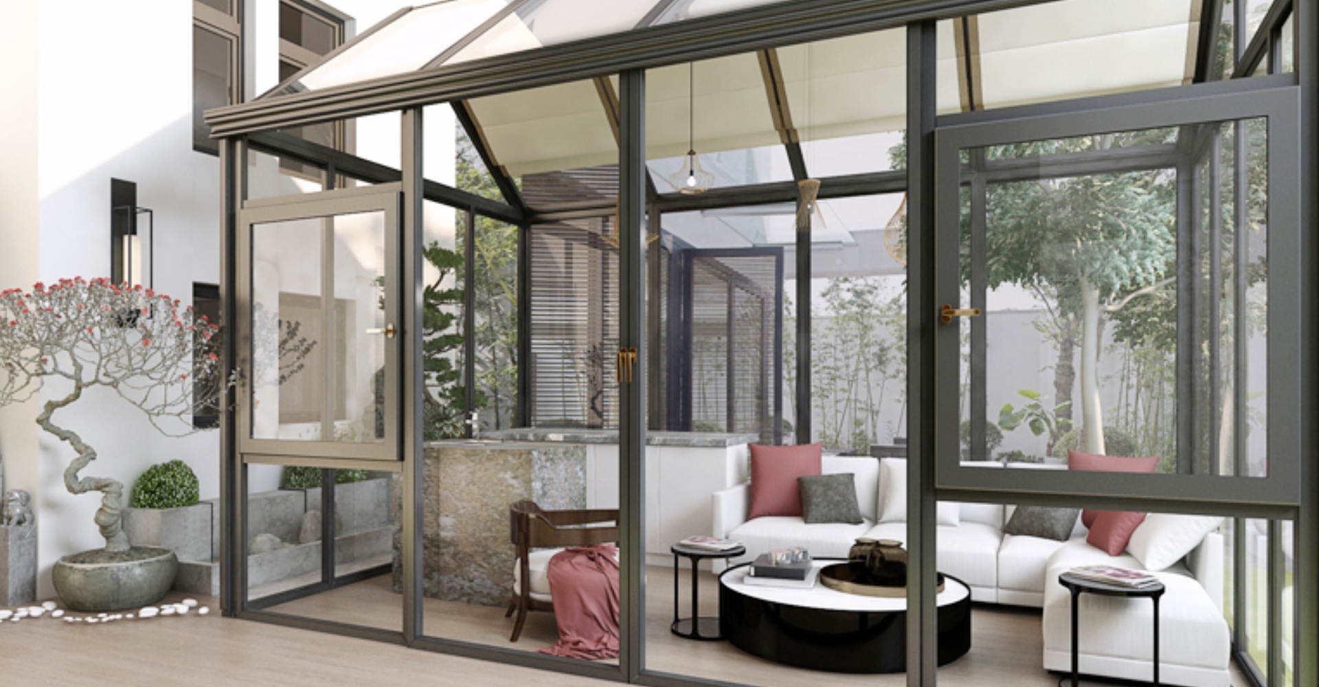在后院或阳台上建造阳光房,可作为阅读、会客、小憩的场所,营造舒适氛围